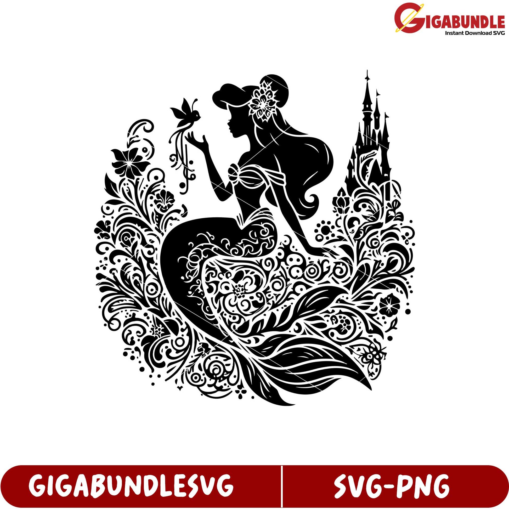 Elegant Mermaid Silhouette Floral Design SVG Instant Download Graphic